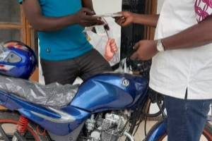 Remise officielle de la moto au superviseur de Vavoua précisément à SETIFLA par le coordonnateur du Bureau Régional de Daloa.
