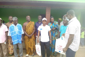 Activité de sensibilisation du cadre de concertation OSC citoyens de Mafere dans le village de Mouassue à la frontière du Ghana ce samedi 12 septembre 2020