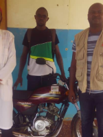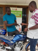 | Remise officielle de la moto au superviseur de Vavoua précisément à SETIFLA par le coordonnateur du BRD. |